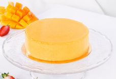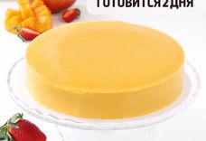 970 г, диаметр 16 см • мусс - манго с нотками облепихи, начинка - натуральная клубника, миндальный бисквит и сам фрукт в составе