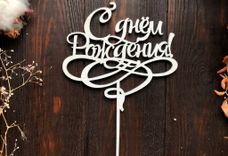 Топпер «С днем Рождения» изготовлен из дерева и окрашен безопасной краской. Его нужно вставить в торт