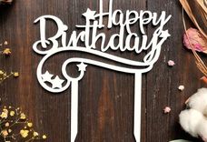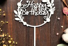 Топпер «Happy Birthday» изготовлен из дерева, окрашен безопасной краской. Его нужно вставить в торт.